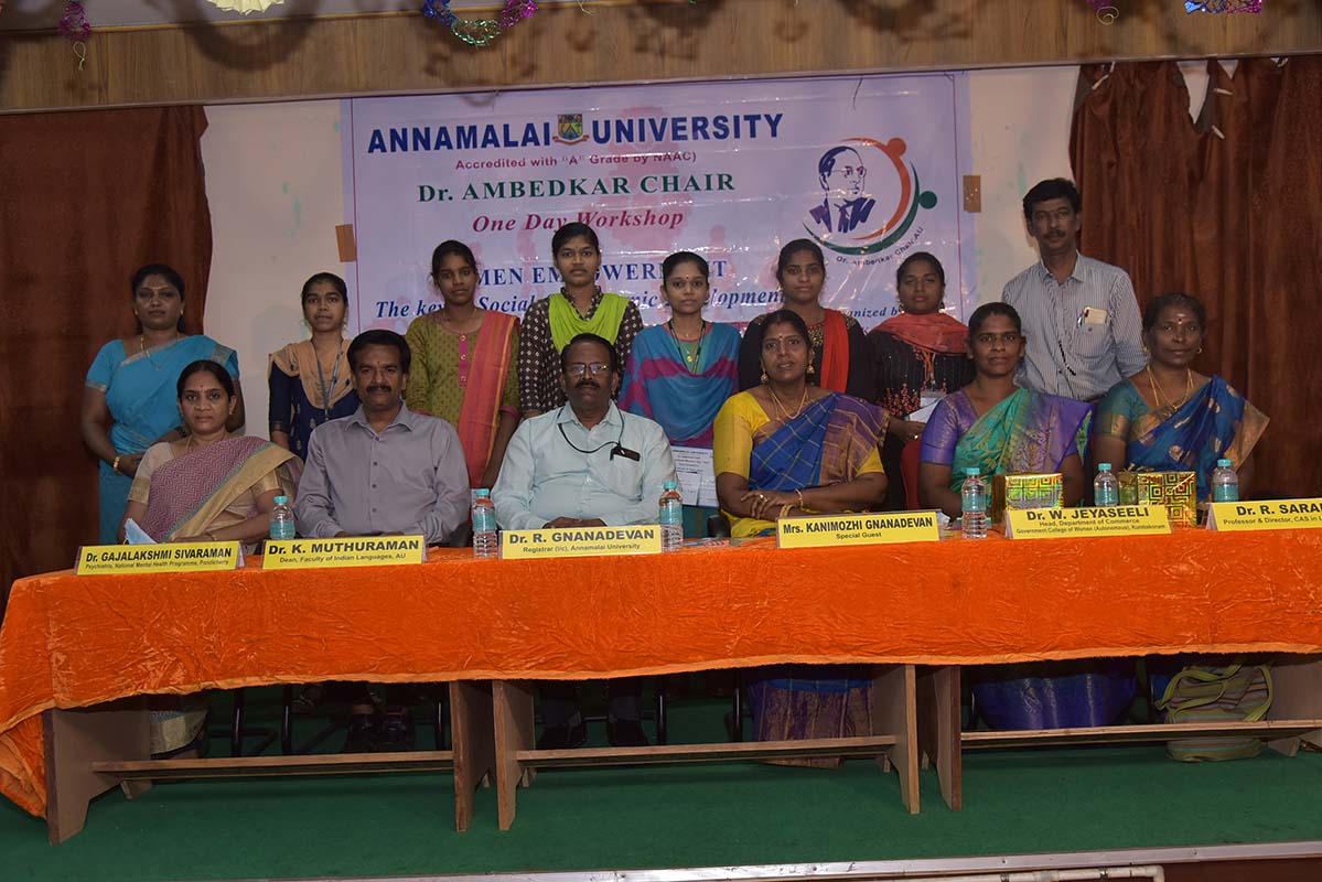 Dr.Ambedkar Chair, Annamalai University organized one day workshop on “Women Empowerment –The key to Social and Economic Development” on the occasion of International Women’s day 2021 on 8 th March 2021 (Monday) in Annamalai University
