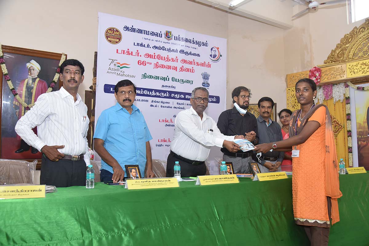 Dr. Ambedkar Chair, Annamalai University organized a memorial lecture on the occasion day of 66th Memorial Day of Dr. B. R. Ambedkar on 6th December 2021